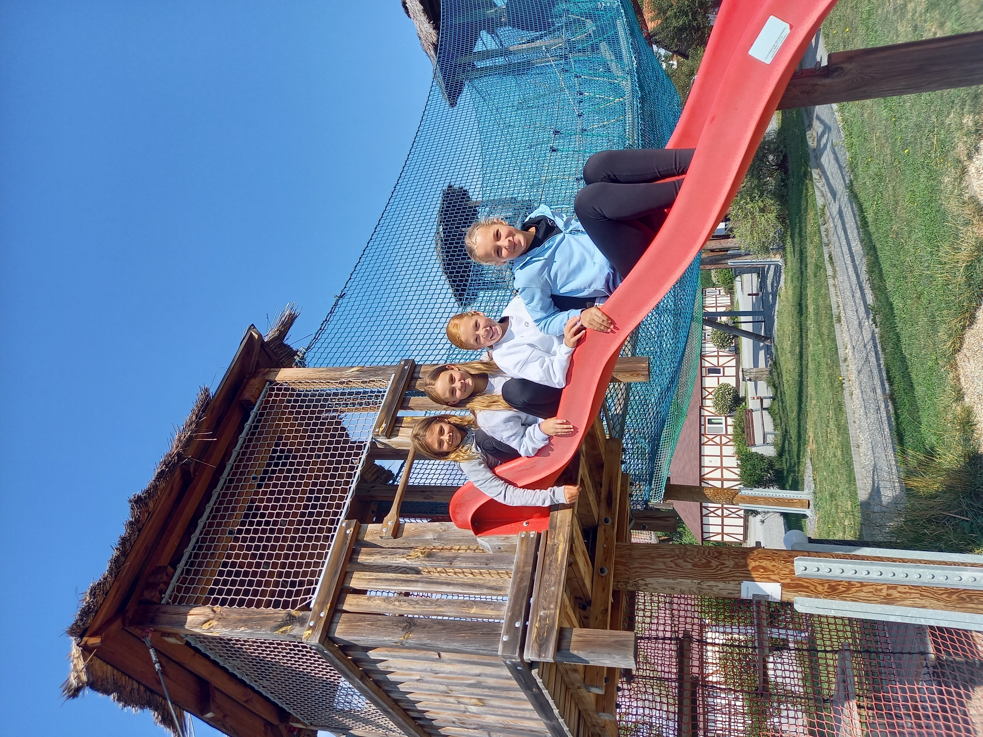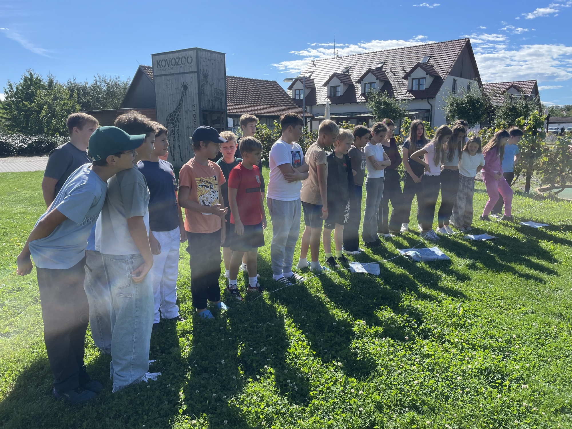 Cesta vlakem uběhla velmi rychle a my jsme se během chvilky ocitli na místě určení. Po ubytování v penzionu už nás čekaly první vnitřní aktivity a seznámení s celým areálem Slováckého dvora. Lanové hřiště se skluzavkou byl pro nás velký zážitek.
