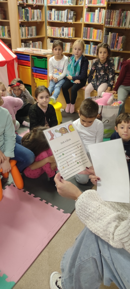 V pondělí 10. 11. 2025 žáci 1. C a 1. D v rámci školní družiny navštívili městskou knihovnu, kde byl pro děti připraven zajímavý program o zajíčcích. Paní knihovnice nejdřív dětem představila krásné ilustrované knížky o zajíčcích a přečetla pohádku „Jak šli zajíci do školy“. Následoval rozbor přečteného příběhu a děti odpovídaly na otázky, které prověřily jejich pozornost. Pak jsme si přečetli velmi známou bajku od Ezopa „Želva a zajíc“. Děti povykládaly příběh vlastními slovy a plnily úkoly dle zadání. Poté jsme si říkali, jaký je rozdíl mezi králíkem a zajícem, jak se pozná zajíc lesní a zajíc polní a kde je můžeme spatřit. Děti byly moc šikovné a všechny otázky zodpověděly. Na závěr si děti prohlížely knížky a zkoušeli jsme společnou četbu.