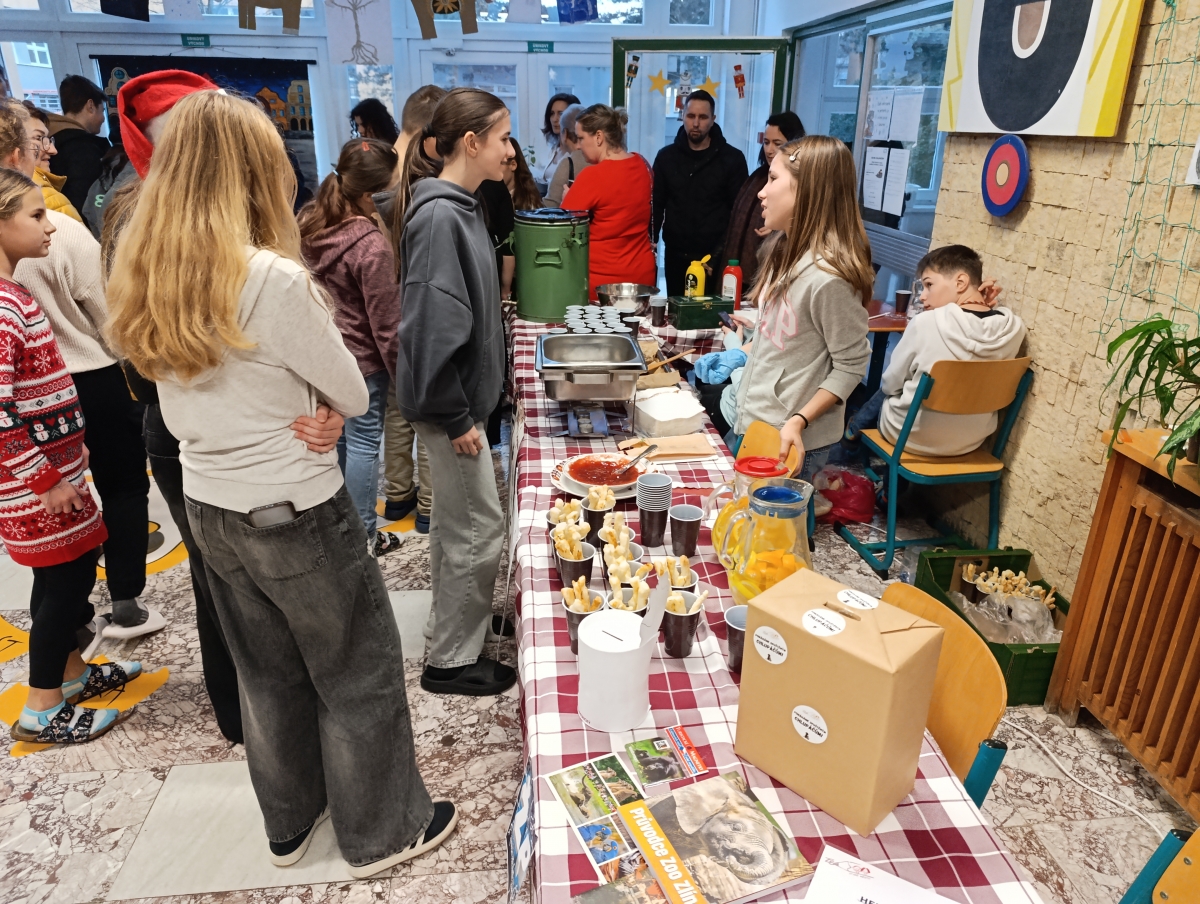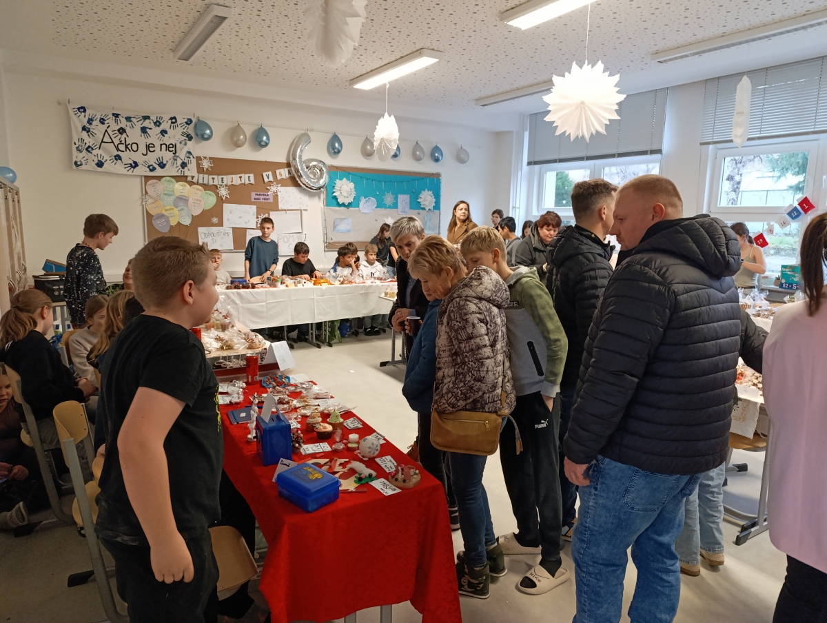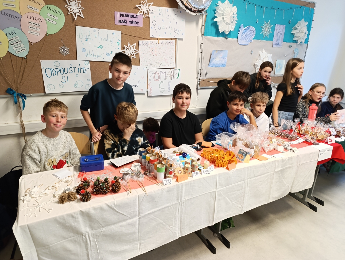 Pak už začal jarmark, na kterém třídy prodávaly své výrobky. Nabídka byla pestrá a každý si mohl najít to své. Převládaly vánoční ozdoby, věnce, sladkosti a samozřejmě vánoční cukroví. Jarmark nás jako vždy mile překvapil, neboť ukázal, jak zručné a šikovné (nejenom) žáky naše škola má.