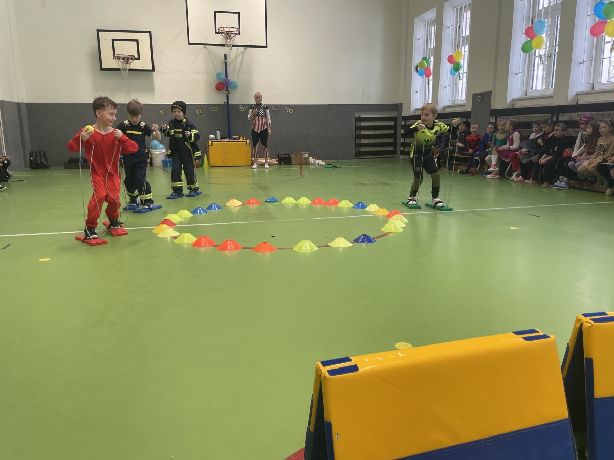 Prvňáčkům z naší školy se ale podařilo dostat na Olympijské hry netradičního formátu – a to v rámci Karnevalu prvních tříd. Mohli si tak vyzkoušet rychlobruslení, snowboarding, biatlon nebo curling na vlastní kůži. O sportovce z řad víl, princezen, hasičů, pirátů, akčních i pohádkových hrdinů, zvířátek, fotbalistů, kouzelníků apod. nebyla nouze a fanouškovské povzbuzování závodníků bylo určitě slyšet až do Milana i Cortiny.