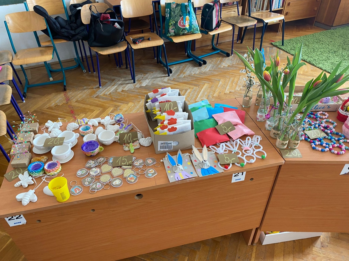 V pondělí 30. března proběhl v naší školní družině velikonoční jarmark. Návštěvníci si mohli zakoupit krásné velikonoční dekorace, které s nadšením vyráběli žáci pod vedením svých vychovatelek. V nabídce byly tradiční kraslice, jarní věnečky, ručně vyráběné ozdoby, drobné dárky a nechyběly ani sladké perníčky od paní Fialové. Velké děkuji patří paním vychovatelkám, dětem, rodičům a všem, kteří se podíleli na výrobě velikonočních dekorací.