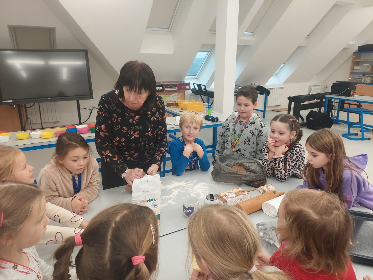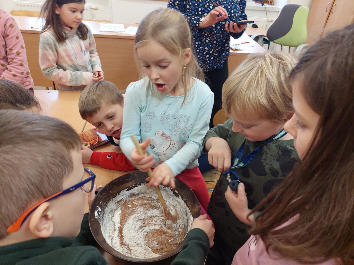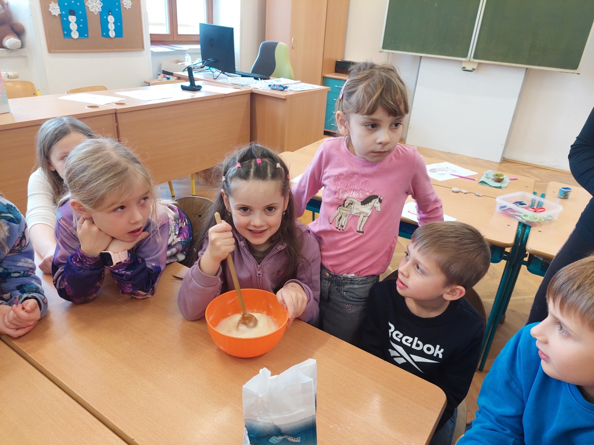 povídali o receptu a o tom, jak se těsto připravuje. Pak jsme si vyhrnuli rukávy a těsto společně