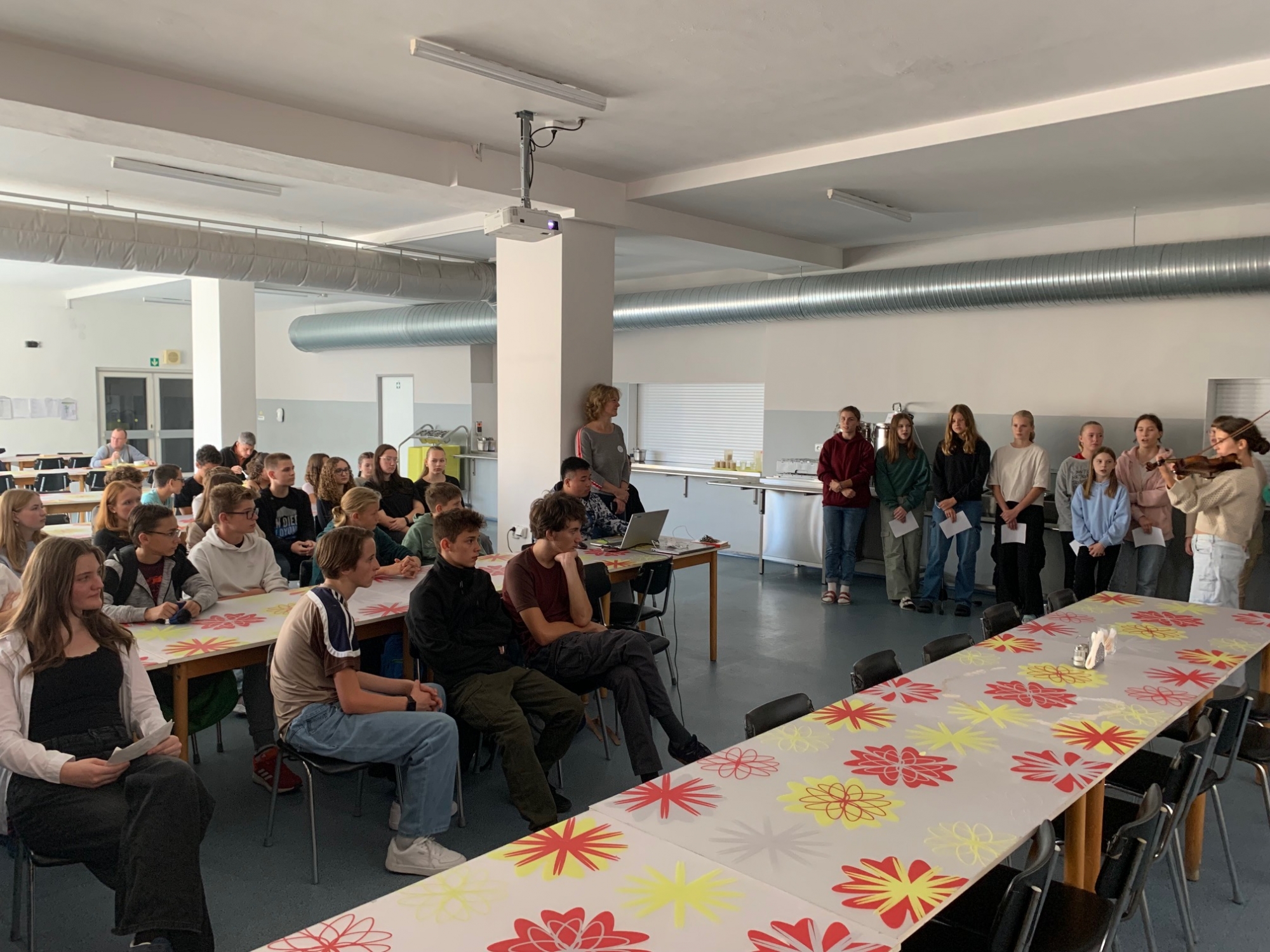Od soboty 5. října 2024 hostí 13 našich žáků 9. ročníku 13 žáků německého gymnázia v Rietbergu (spolková země Severní Porýní–Vestfálsko). Tématem této podzimní výměny je „Digitalizace k udržitelnosti“. Kromě toho, že žáci pilně pracují na projektu, mají také připraveny další aktivity. Naši deváťáci v pondělí 7. října prezentovali německým partnerům Českou republiku, Zlínský kraj, Staré Město a Zoologickou zahradu Lešná Zlín. Do Lešné jsme se také vypravili v úterý 8. října. Účastníci výměnného pobytu nejdříve plnili úkoly, které jim připravily pracovnice SVČ Klubko pod vedením Moniky Havláskové. Po splnění úkolů ve skupinkách následovala přednáška v areálu voliéry supů. Kromě toho, že povídání o supech bylo nesmírně zajímavé, měli žáci možnost vidět krmení a klást otázky k tomuto tématu. Zodpovězení všech dotazů nakonec trvalo stejnou dobu jako samotná přednáška, což zaměstnancům ZOO udělalo upřímnou radost. Během středy a čtvrtka dokončí němečtí a naši žáci práci na projektu „Digitalizace k udržitelnosti“ a budou následně prezentovat výsledky své práce. Ve čtvrtek večer proběhne v Jezuitském sklepě závěrečný německo–český večer, na který jsou pozvány také všechny rodiny, které se staraly o naše německé partnery, vedení školy a města. V pátek ráno odjíždí žáci a pedagogický doprovod Gymnasia Nepomucenum Rietberg společně s paní Potrebovou z Droste Hausu Verl zpět domů. Naši žáci se těší, že své německé kamárady navštíví v rámci projektu Erasmus+ příští rok v květnu.