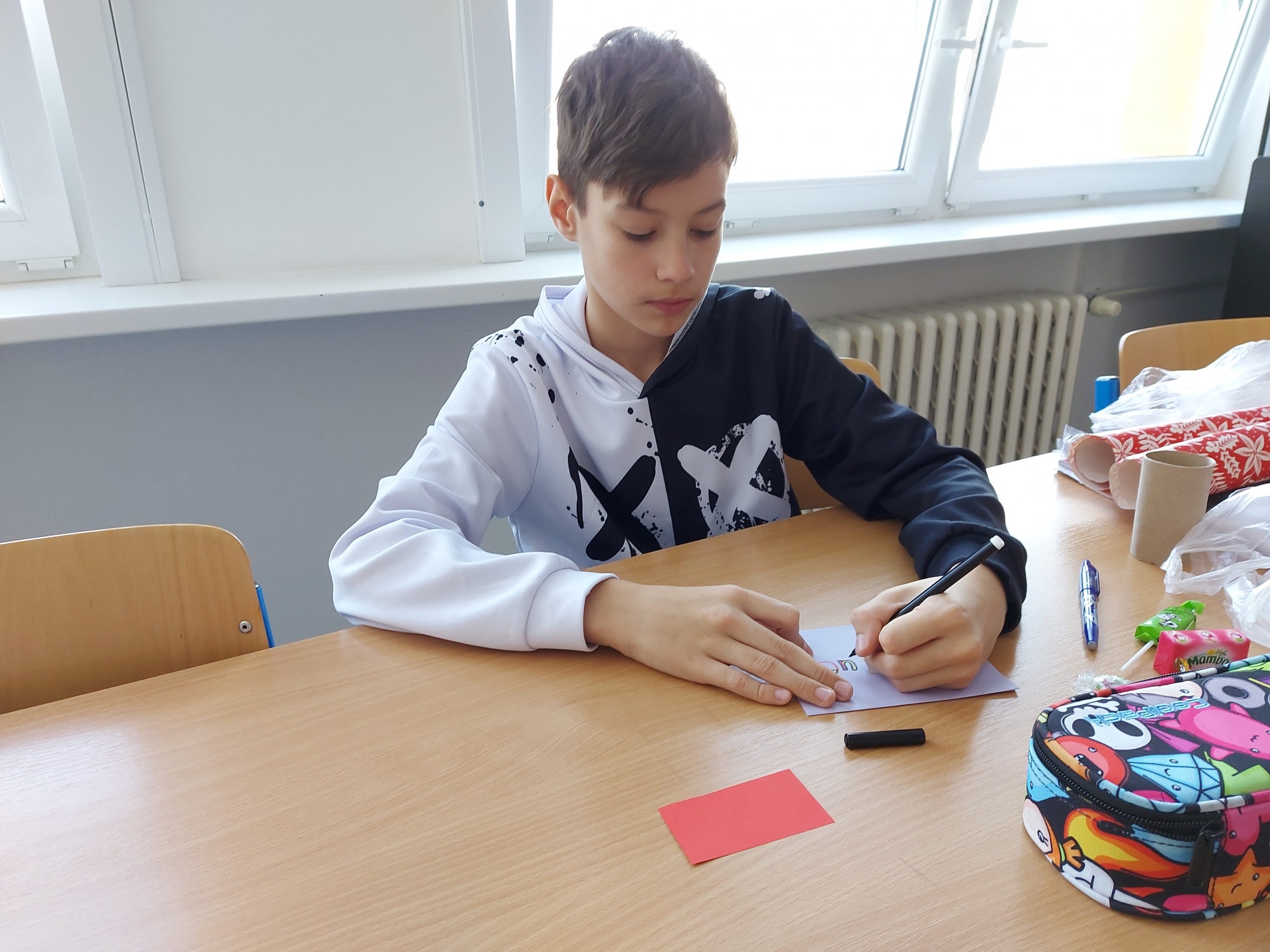 Do této spolupráce se s velkým nadšením zapojili všichni žáci ze třídy 6. D. Rychlostí blesku jsme se pustili do sepsání úvodních dopisů, a protože se blíží čas Vánoc, vyrobili jsme ještě pro každého vánoční překvapení, tzv. Christmas crackers.