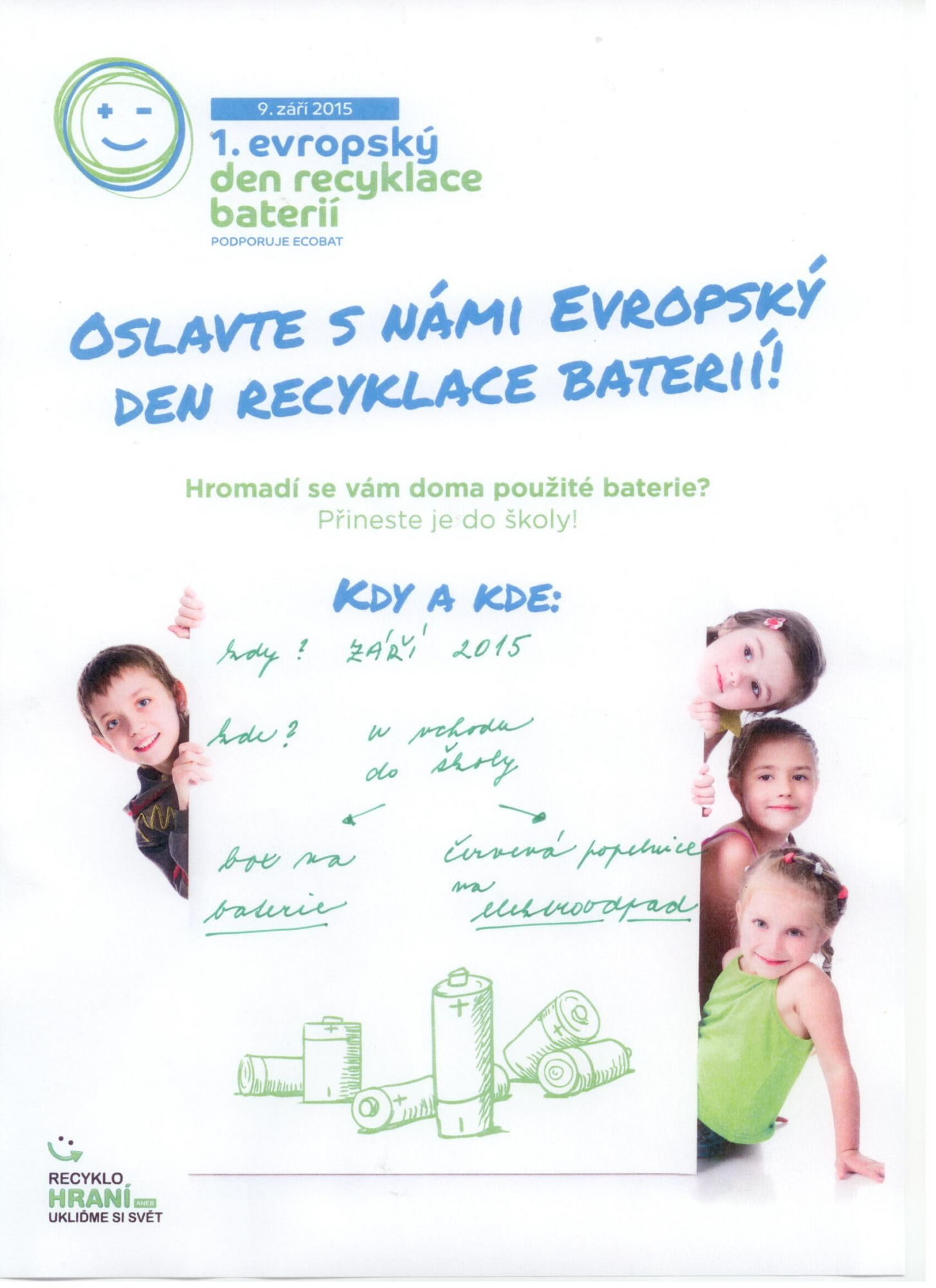 Evropský den recyklace baterií. Hlavním cílem tohoto dne je zvýšení povědomí veřejnosti o důležitosti třídění a recyklace použitých baterií a akumulátorů.
