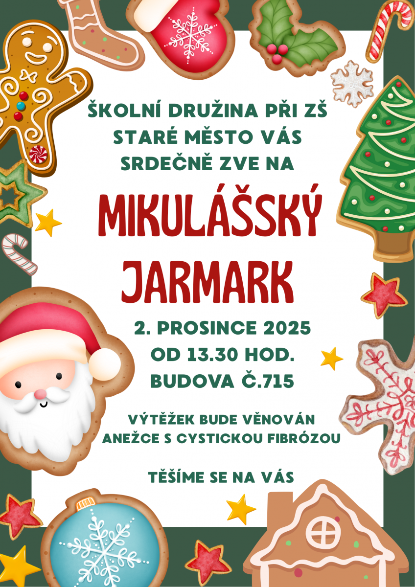 Srdečně Vás zveme na Mikulášský jarmark, který se uskuteční dne 2. prosince 2025 v budově školy č. 715 ZŠ Staré Město od 13.30 do 16.30 hodin.
