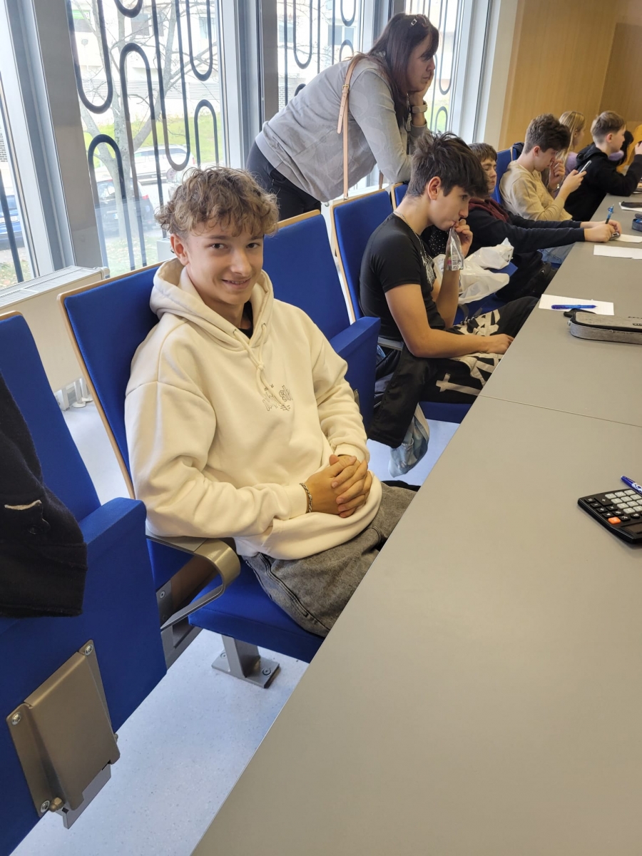 V pátek 7. listopadu Vojtěch Stojnov z VIII. D reprezentoval naši školu v krajském kole Logické olympiády. Jedná se o soutěž organizovanou Menzou. Do krajského kola bylo pozváno celkem 2100 řešitelů ze základních škol a odpovídajících ročníků víceletých gymnázií. Vojta se určitě neztratil - mezi soutěžícími našeho kraje se umístil v první polovině.