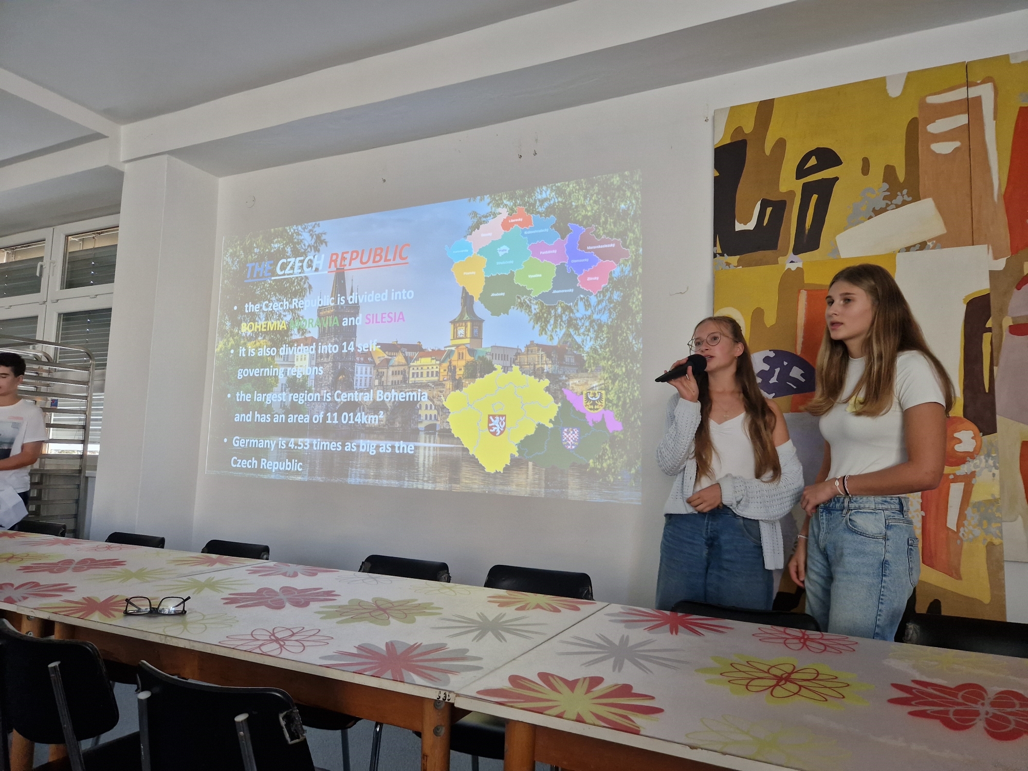 Většina našich nejstarších žáků z 9.ročníku se věnovala projektovému zpracování anglicky mluvících zemí (Velká Británie, Spojené státy americké, Kanada, Austrálie, Nový Zéland). Každá skupina si vybrala jednu zemi a tu ve svém projektu představili. Ostatní žáci si připravili prezentace o České republice v anglickém jazyce pro žáky z Německa, kteří k nám přijeli v rámci programu Erasmus+.
