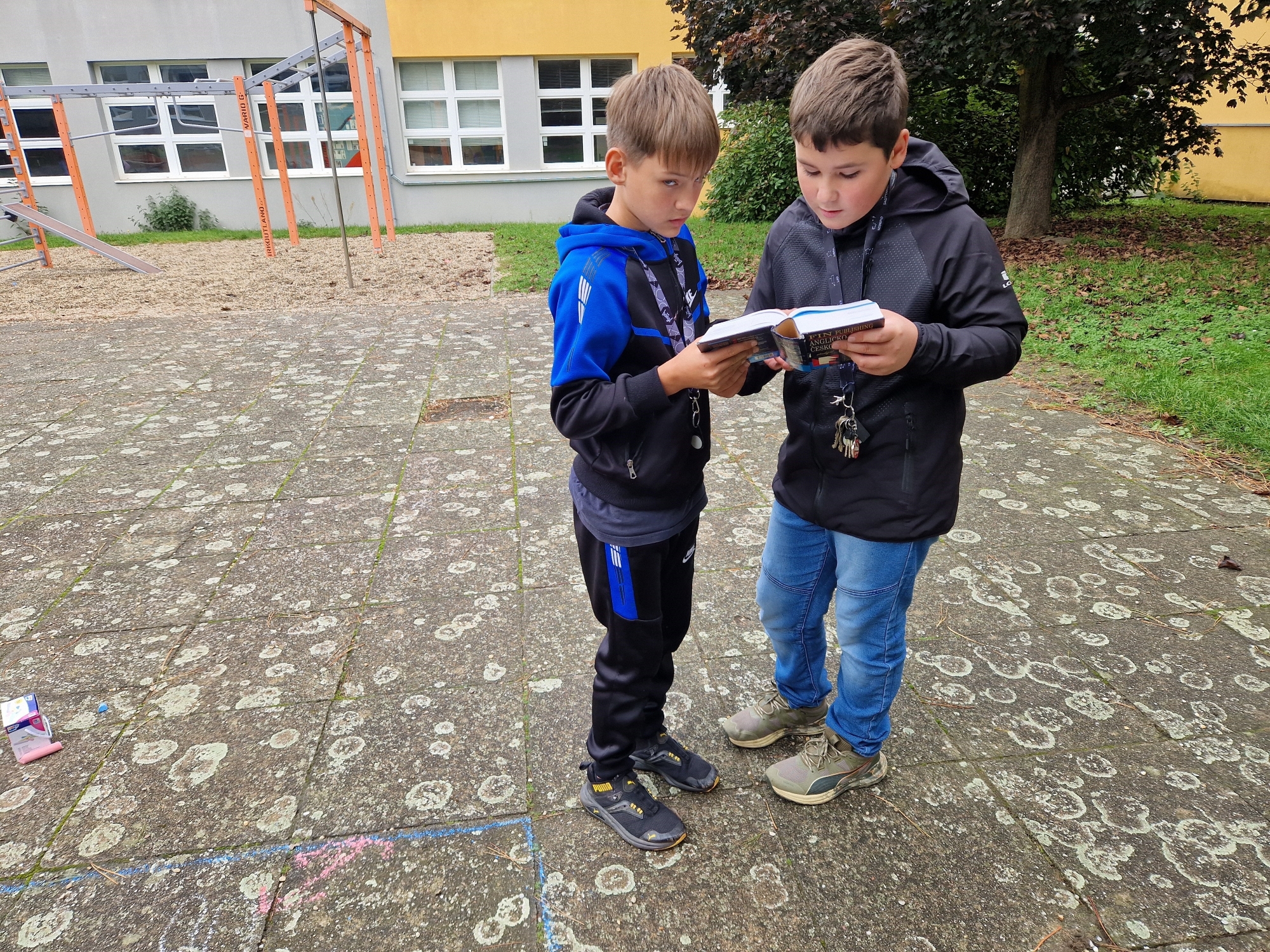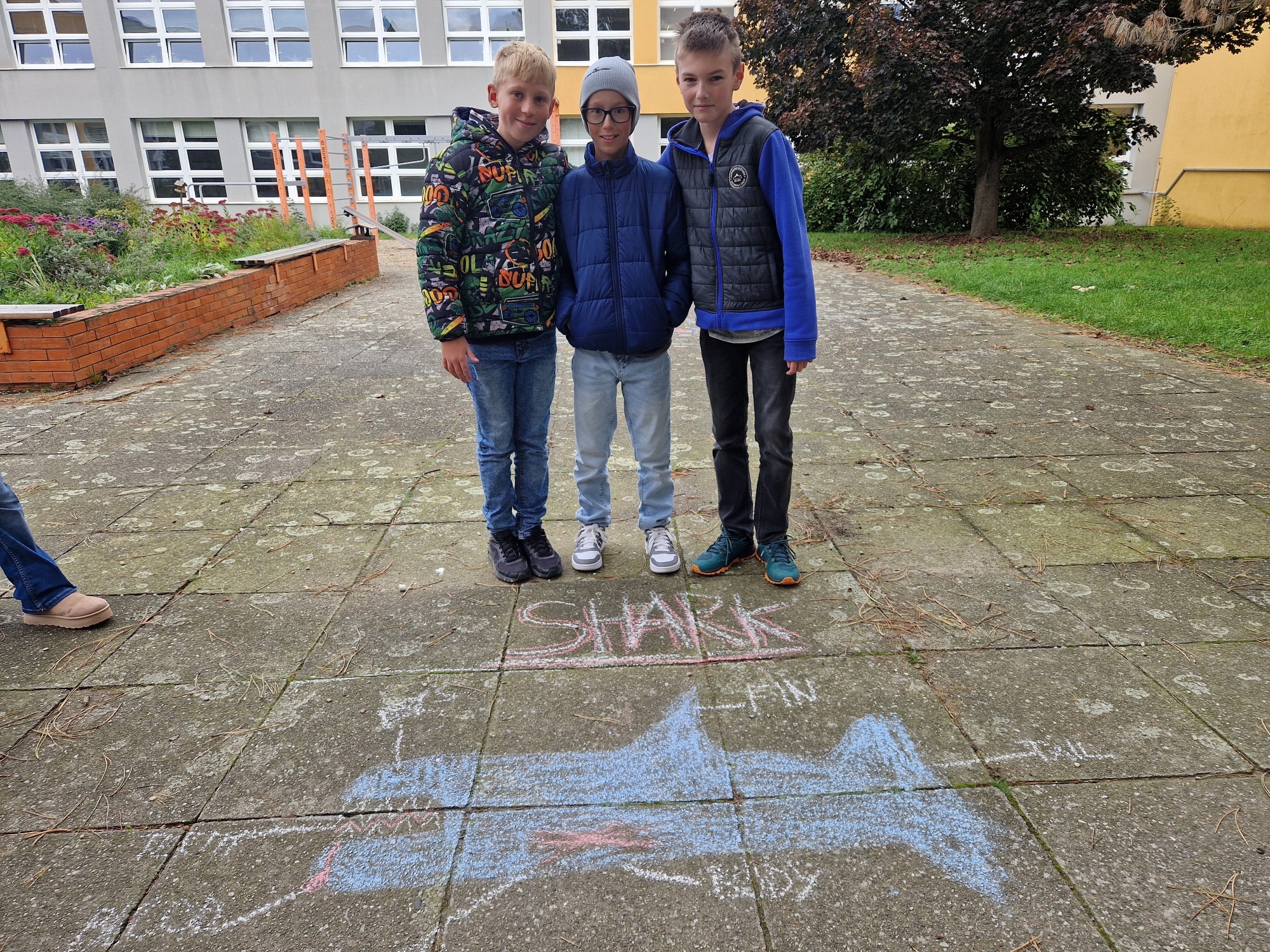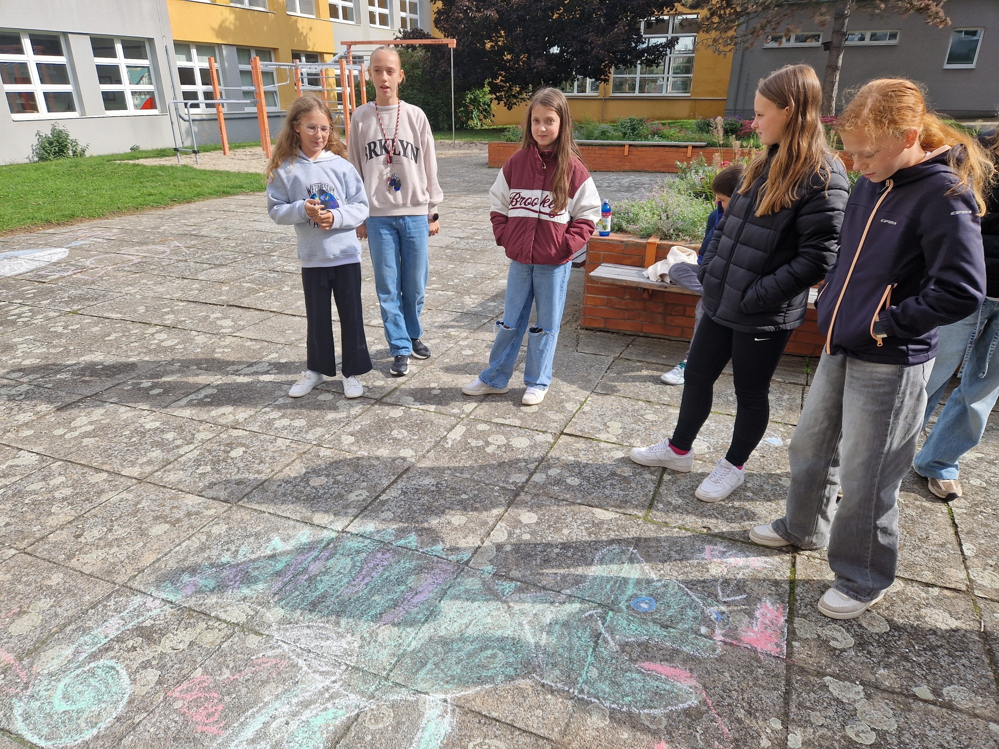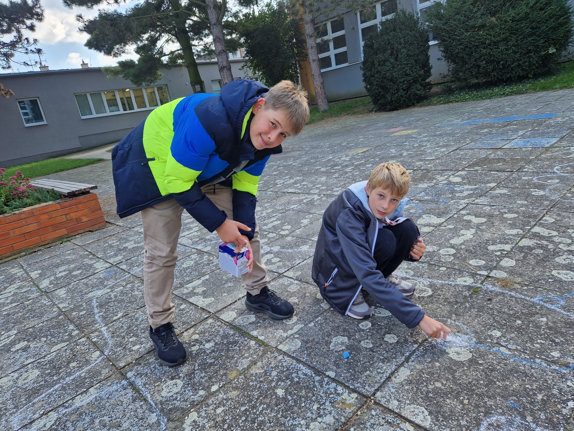 V prvním říjnovém týdnu jsme s našimi žáky oslavili Evropský den jazyků, který připadá na 26. září a jeho hlavním cílem je podpořit jazykové a kulturní rozmanitosti. V rámci této tradice byly pro žáky nachystány různorodé aktivity v jednotlivých ročnících. Žáci 6. ročníku využili prostranství školního atria a měli za úkol nakreslit křídami jakékoli zvíře, anglicky popsat jednotlivé části těla a představit ho ústně ostatním spolužákům.