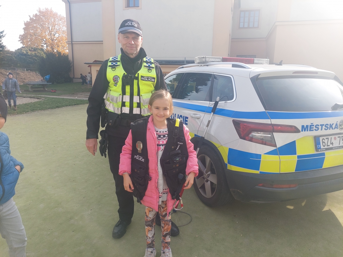 Ve školní družině proběhla zajímavá beseda se strážníky Městské policie Staré Město. Akce se uskutečnila na školním hřišti 21. a 23. 10. a zaměřila se na bezpečné chování dětí v různých situacích. Strážníci dětem připomněli pravidla správného přecházení silnice a bezpečné jízdy na kole. Povídali jsme si o tom, jak se zachovat při setkání s cizí osobou nebo neznámým zvířetem. Velký zájem vzbudila ukázka policejního vozidla a vybavení, které strážníci používají ke své práci. Děti měly možnost nahlédnout do policejního auta, prohlédnout si výstroj a položit strážníkům zvídavé otázky. Beseda byla velmi poučná a zároveň zábavná.