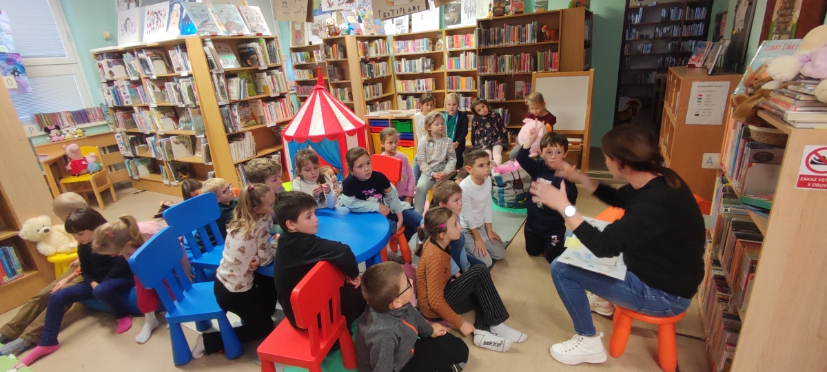 V pondělí 10. 11. 2025 žáci 1. C a 1. D v rámci školní družiny navštívili městskou knihovnu, kde byl pro děti připraven zajímavý program o zajíčcích. Paní knihovnice nejdřív dětem představila krásné ilustrované knížky o zajíčcích a přečetla pohádku „Jak šli zajíci do školy“. Následoval rozbor přečteného příběhu a děti odpovídaly na otázky, které prověřily jejich pozornost. Pak jsme si přečetli velmi známou bajku od Ezopa „Želva a zajíc“. Děti povykládaly příběh vlastními slovy a plnily úkoly dle zadání. Poté jsme si říkali, jaký je rozdíl mezi králíkem a zajícem, jak se pozná zajíc lesní a zajíc polní a kde je můžeme spatřit. Děti byly moc šikovné a všechny otázky zodpověděly. Na závěr si děti prohlížely knížky a zkoušeli jsme společnou četbu.