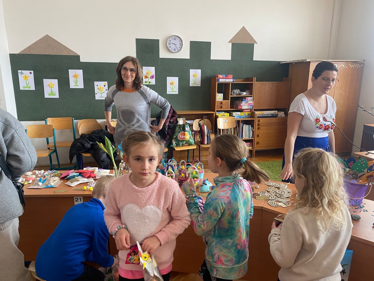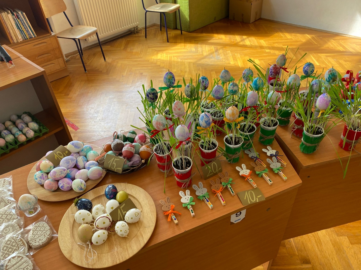 V pondělí 30. března proběhl v naší školní družině velikonoční jarmark. Návštěvníci si mohli zakoupit krásné velikonoční dekorace, které s nadšením vyráběli žáci pod vedením svých vychovatelek. V nabídce byly tradiční kraslice, jarní věnečky, ručně vyráběné ozdoby, drobné dárky a nechyběly ani sladké perníčky od paní Fialové. Velké děkuji patří paním vychovatelkám, dětem, rodičům a všem, kteří se podíleli na výrobě velikonočních dekorací.