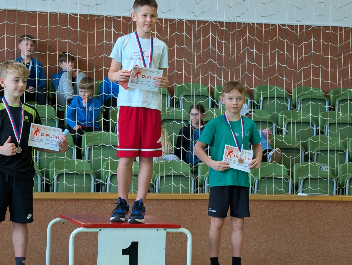 - Václav Valštýn (5. B) – 3. místo v hodu míčkem do dálky