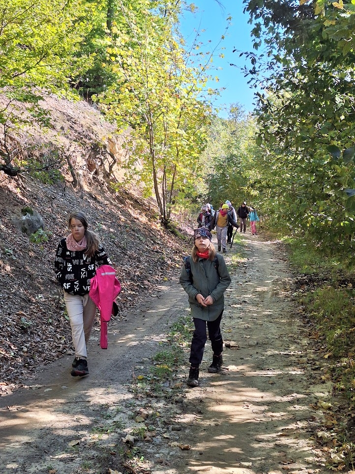 Počasí bylo na říjen nezvykle chladné až mrazivé, zato slunečné, s jasně modrou oblohou. Naše trasa vedla lesem, přes louky i skalnatý terén. Ze skal jsme obdivovali nádherné výhledy do krajiny – a samozřejmě jsme si také udělali hodně pěkných fotografií na památku. Na prosluněných Moravských loukách uprostřed lesů jsme obdivovali květy ocúnů, podařilo se nám zahlédnout kudlanku nábožnou a cestou jsme si nasbírali i několik lesklých čerstvých kaštanů na tvoření.