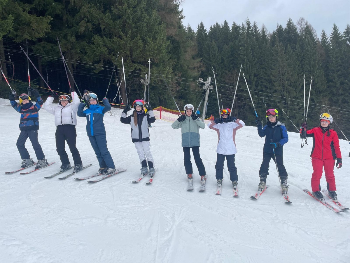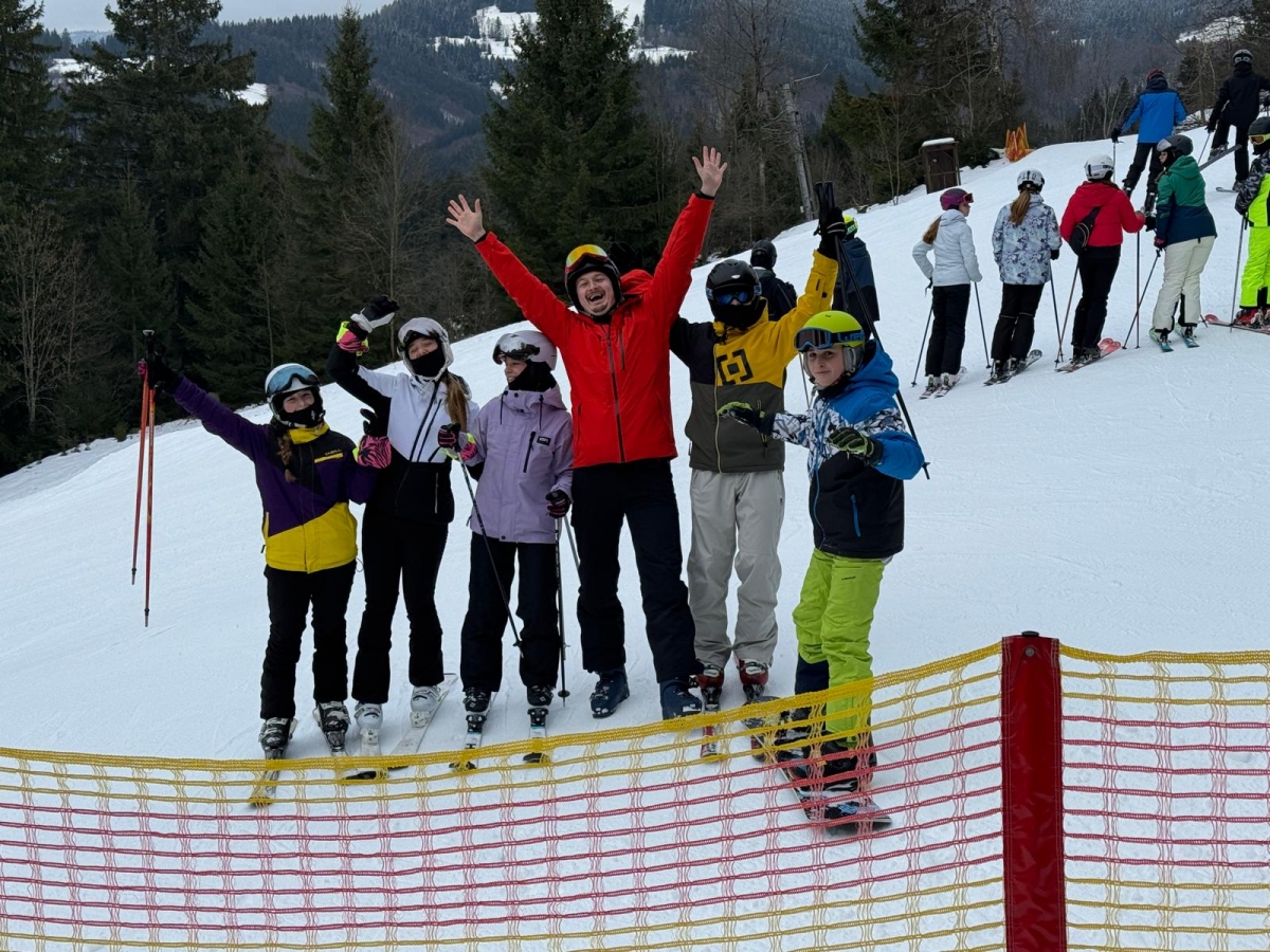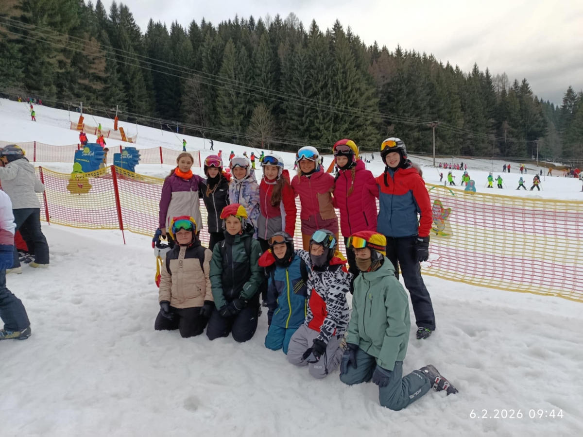 Rok se s rokem sešel a my, téměř na den přesně, jsme opět navštívili Beskydy s helmami na hlavě, lyžemi a hůlkami v rukou a přáním, aby nám letošní lyžařský kurz zase vyšel. V neděli 1. února se do Valašského království odebraly všechny třídy současných sedmáků – 7. A, 7. B, 7. C a 7. D. Ano… Skutečně vyrazily všechny najednou. Celkem 96 lyžařských frekventantů, 8 instruktorů a lékař kurzu. Vysoký počet dětí opět potvrdil, že zájem o tuto velkou školní akci neupadá, jak je tomu na některých školách. A to nakonec osm přihlášených účastníků muselo kvůli nemoci či zranění zůstat nedobrovolně doma. Na odjezdu nás čekaly dva velké autobusy a jeden malý minibus firmy Autodoprava Dubovský, kteří nám již pravidelně zajišťují přesun do Velkých Karlovic. Azyl jsme opět nalezli v našem oblíbeném horském hotelu KYČERKA v obci Velké Karlovice. Odtud nás každý den ráno svezli zkušení řidiči svým skibusem do lyžařského areálu SYNOT Kyčerka, kde probíhal již od 8.00 hodin výcvik všech osmi družstev. Protože nás bylo víc jak 100, musel se skibus jedenkrát otočit, aby odvezl i druhou polovinu. Všichni žáci prošli během týdne základním výcvikem, kde se naučili základům sjezdového lyžování či zdokonalovali svoji lyžařskou techniku. O to se staral tým zkušených instruktorů ve složení – Bohdana Krystková, Štěpán Stodůlka, Martin Motyčka, Milan Zpěvák, Renata Vaňková, Michaela Jančová, Renata Hájková a Hana Svobodová. O zdraví našich malých lyžařů pečoval opět úžasný lékař kurzu Štěpán Hrňa, který je již téměř deset sezon stálicí našeho týmu. A popravdě, tento týden bez něho už si nedokážeme představit. Naštěstí byl letošní kurz, na rozdíl od toho loňského, zdravotně jednodušší a neobjevily se během pobytu žádné vážné zdravotní komplikace. K dispozici jsme měli několik lyžařských terénů různé obtížnosti. Skvělé podmínky pro výuku začátečníků (mírný svah, pohyblivé koberce, pomalé vleky), ale i středně náročné svahy pro lyžování těch zkušenějších. Lyžařský program byl v průběhu týdne doplněn zdravotními vycházkami, přednáškami o horách, karnevalem, závody ve slalomu, natáčením na video a dron, večerní zábavou ze strany našich svěřenců, a dokonce rockovým koncertem. Čtyřčlenná rocková banda pod vedením našeho pana ředitele vlétla s elektrickými kytarami do prostor hotelové jídelny a na hodinu a půl rozpoutala skvělou zábavu. Z předchozích let se nám osvědčila návštěva wellness centra VODNÍ SVĚT, které bylo postaveno v těsné blízkosti našeho hotelu. Návštěvu jsme si zpestřili rychlostními závody ve sjezdu tobogánem. Sluníčka jsme si letos mnoho neužili. Celý týden bylo pod mrakem, občas nás překvapily i nějaké kapky. Toto byla předpověď počasí na celý týden. A ta se také vyplnila. Lyžování na připravených sjezdovkách, skvělá strava a spousta zážitků způsobily, že se dětem domů ani moc nechtělo. Ovšem vše jednou končí, ale vzpomínky na lyžařský kurz nám v našich hlavách určitě zůstanou na dlouhou dobu. Chci říct velké DÍKY všem mým kolegům za skvělou a bezchybnou spolupráci. Chci poděkovat i dětem za dobře zvládnutý týden na horách! Byl to velmi dobrý kurz, protože se všichni vrátili zdraví a bez jakéhokoliv zranění. A na závěr vzkaz pro všechny: Mějte hory rádi, jezděte tam v zimě i v létě, mějte k nim respekt a ony se Vám odvděčí nezapomenutelnými zážitky!