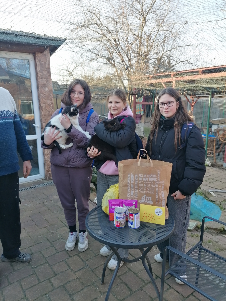 V pátek 27. 2. 2026 se tři žákyně ze 7. B společně s paní učitelkou vydaly do útulku v Nedakonicích, aby předaly dary ze sbírky, která probíhala u nás na škole. Podařilo se nám vybrat 2 velké tašky plné hraček, konzerv, granulí, pamlsků a především finanční dar v hodnotě 1400 Kč.