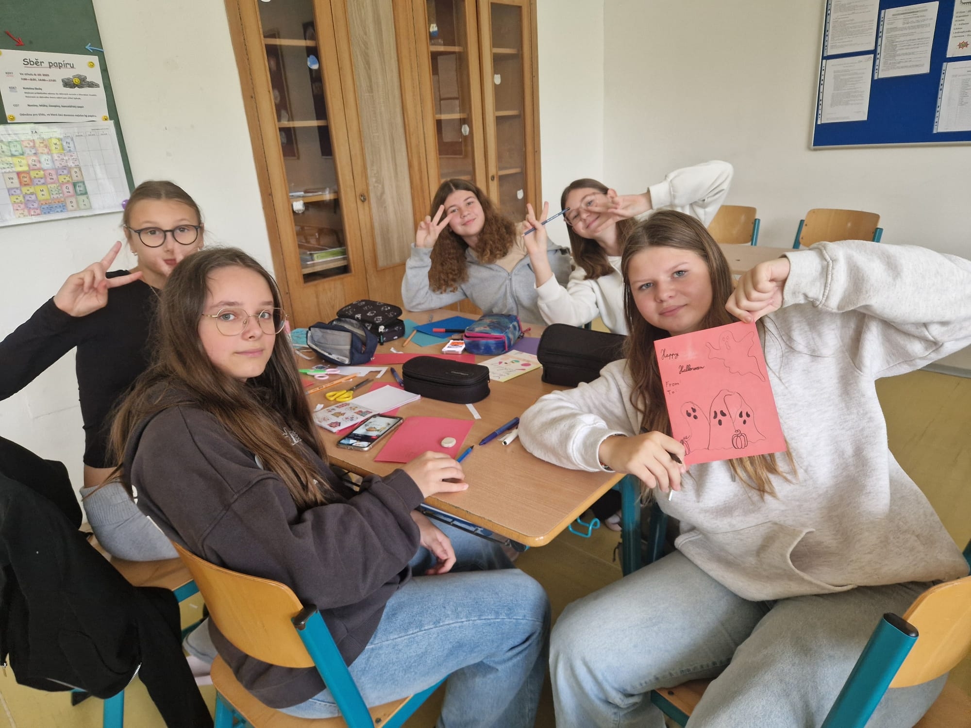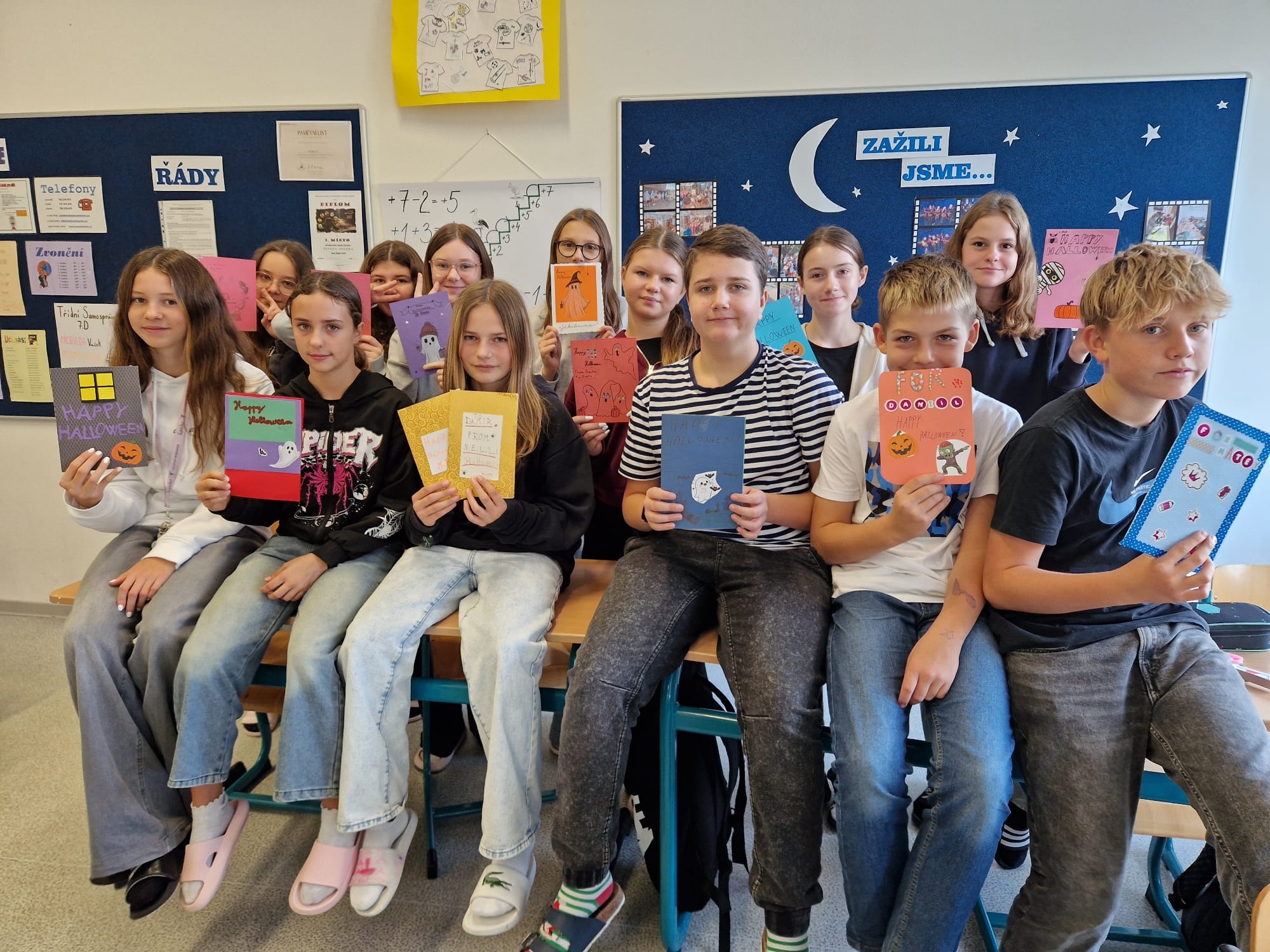 Společně budeme pracovat na projektech, které budou zaměřeny na rozvíjení anglického jazyka. Každý žák si vylosoval kamaráda na dopisování a ve svém prvním projektu se představil, popsal svoji rodinu, školu a volný čas. Halloween je u žáků velmi oblíbeným tématem, proto ho žáci nezapomněli ve svém dopise zmínit a napsat například tematické vtipy nebo hádanky.