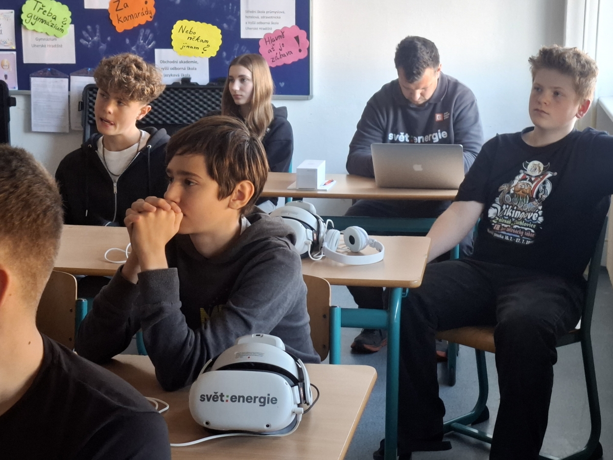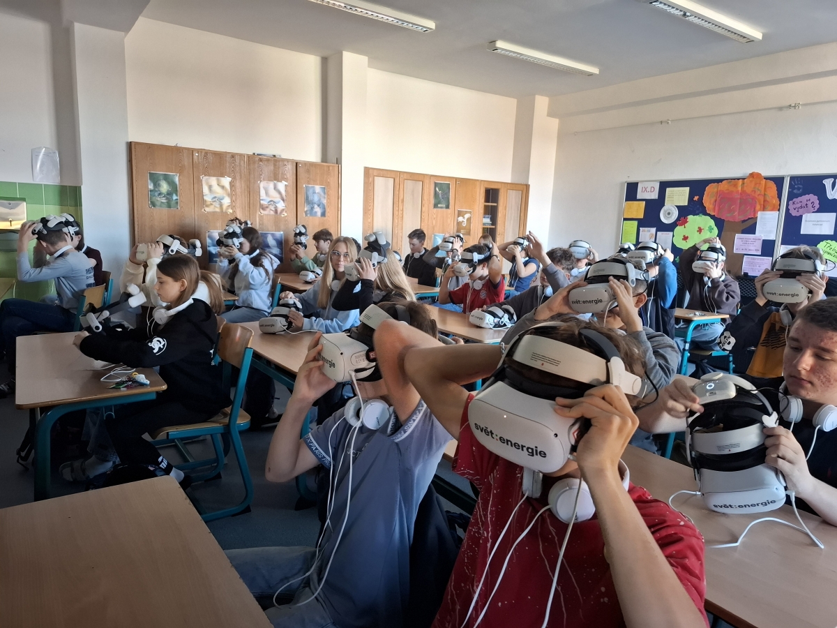 Žáci absolvovali nejen debatu o hlavních tématech současnosti i budoucnosti energetiky s předními českými odborníky z praxe, ale vyzkoušeli si i brýle s prohlídkou nejstřeženějších míst Temelína a Dukovan ve virtuální realitě. Podívali se až k reaktoru, dovnitř chladicí věže nebo na velín.